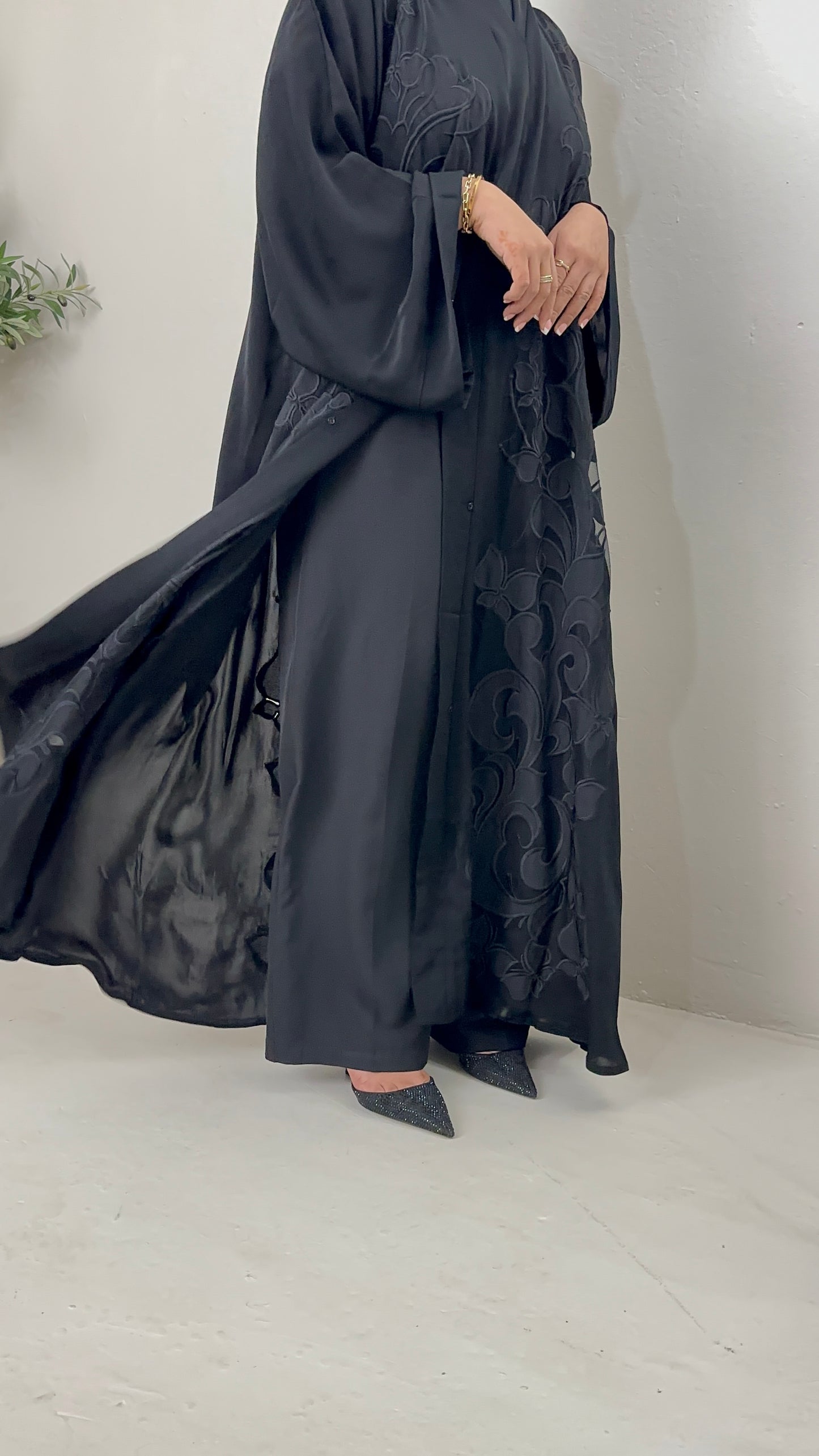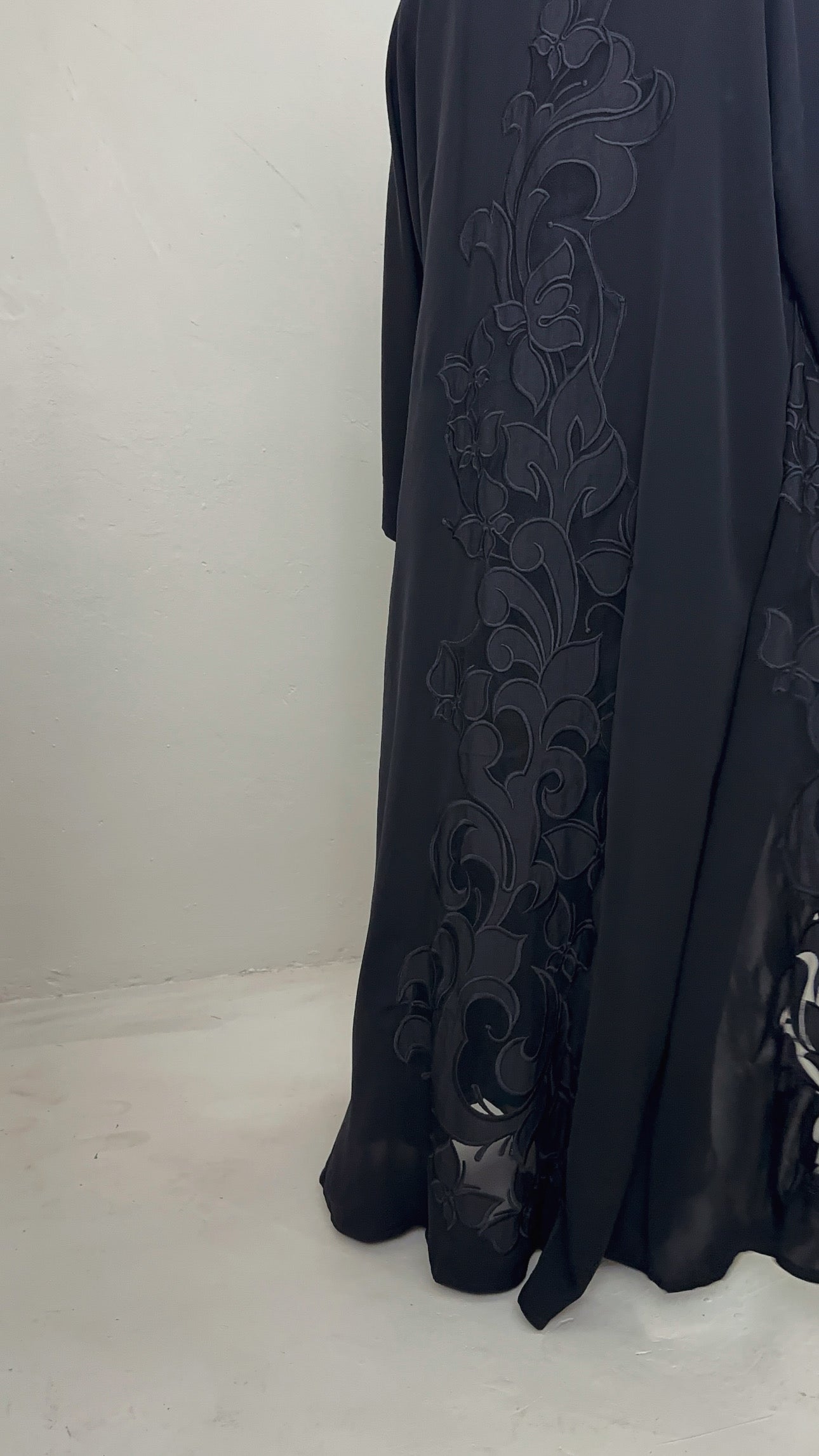 Elegantly embroidered along the front and back, this abaya features a chiffon overlay that moves gracefully with every step. Crafted in our signature ADAMMA cut to flatter all body types, it offers a timeless blend of sophistication and effortless flow ( excl inner)